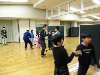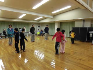 ![]() 初日はリーダー、保護者と一緒に。二日目はプロの先生の指導でレッスンを受けます。 |