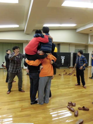 ![]() 最後は、新聞じゃんけん。これで全員乗っていることになっていますが、よく見ると・・・(笑)。 今回のゲーム大会も、とても盛り上がりました。 |