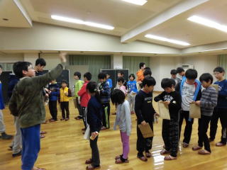 ![]() 二日目の夜は、恒例のボーイ隊主催のゲーム大会です。子どもたちが3チームに別れて、対抗戦を行います。 |