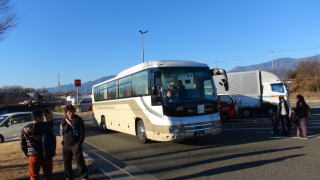 ![]() 観光バスを貸し切って、長野県八ヶ岳のスキー場に向かいます。天気はとても良いのですが、雪があるのかがちょっと心配です。 |